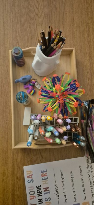 Within the session I use many different techniques from colouring in to dancing to games and talk therapy.
